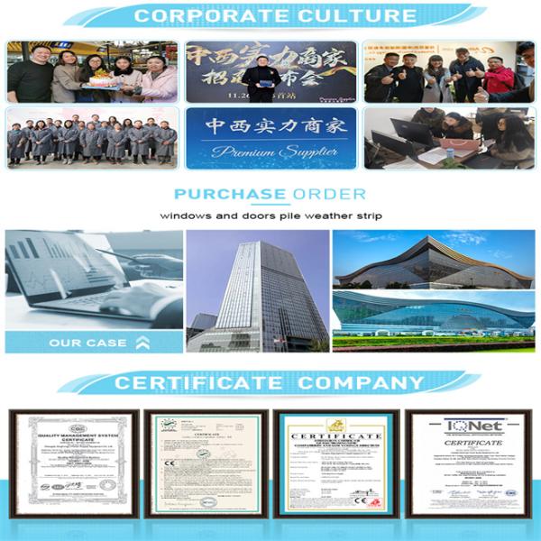 Our company mainly produces high-quality weatherstrips for aluminum alloy doors and windows and plastic steel doors and windows. Except for ordinary weatherstrips. Our company also researches and produces a variety of patented weatherstrips. For many years, we regard product quality as the life of the company, and follow the quality policy of being responsible for every customer, every process, and every product to ensure that the company's products can be provided to customers with the best quality. At the same time, the company has been adhering to the business belief of "quality is life, time is reputation, and price is competitiveness", and welcomes customers from all over the world to negotiate business at any time. The company will wholeheartedly provide you with the best one-stop solution service!